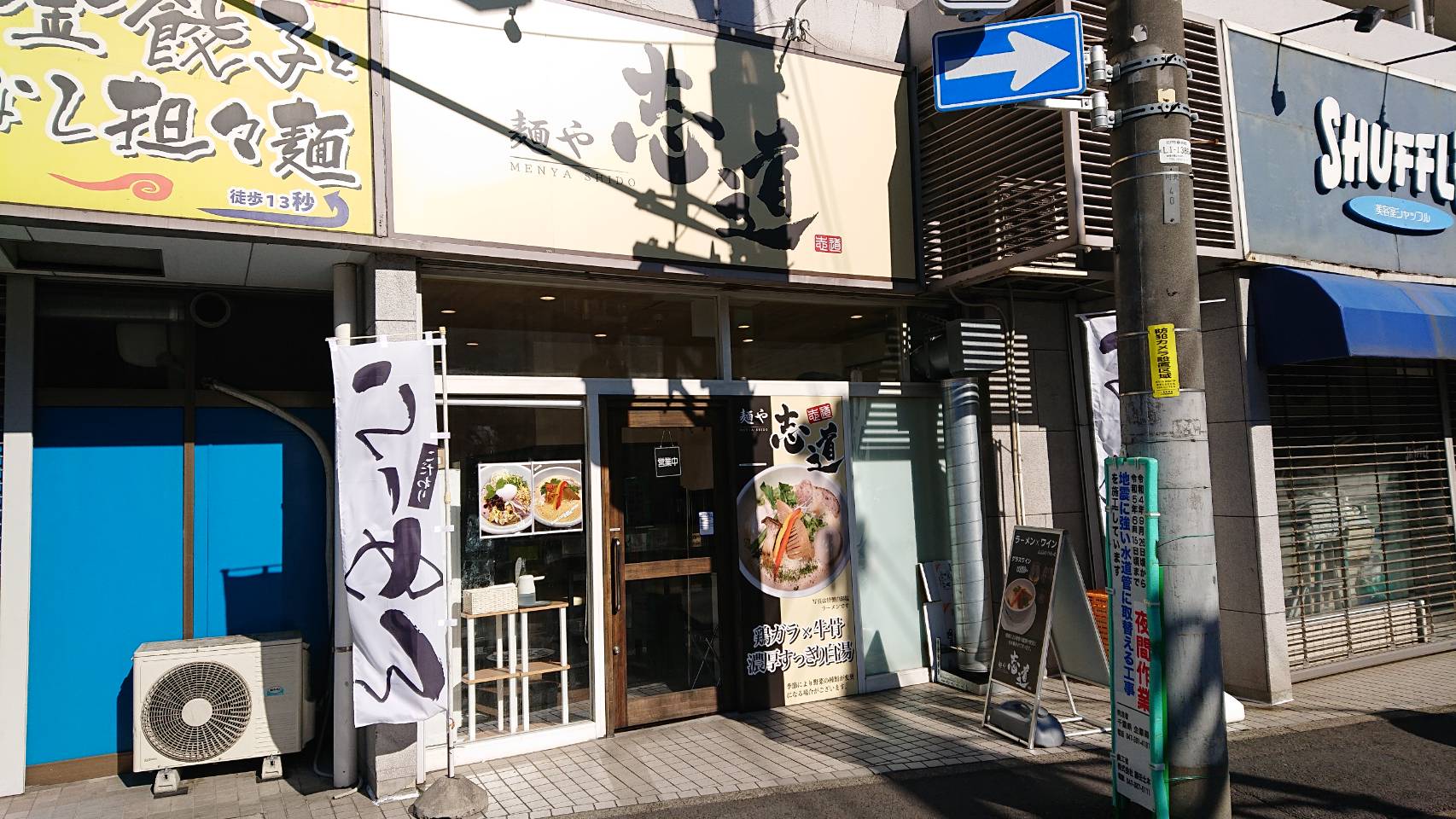 松戸にある麺や 志道。肉と野菜がもりもりに盛られたお店の看板の写真が気になり、