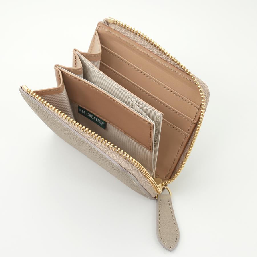 RIA CREATION | ドイツシュリンク マチ付き L字ファスナー ミニウォレット(ライトグレー)