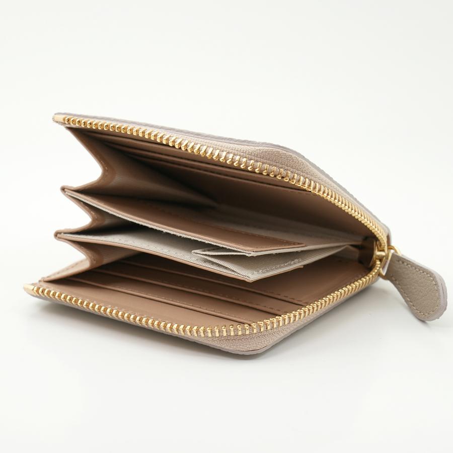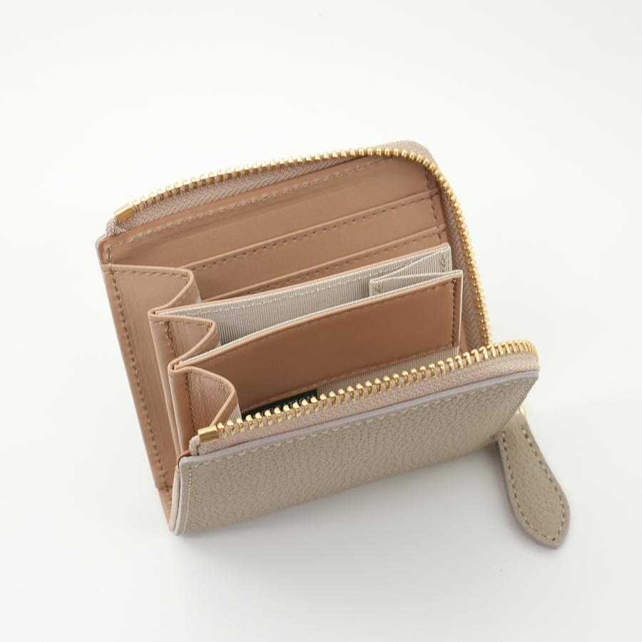 RIA CREATION |ドイツシュリンク マチ付き L字ファスナー ミニウォレット (ライトグレー)